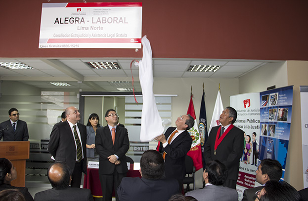 Inauguran el Primer Centro De Asistencia Legal Gratuita Especializado en Materia Laboral Se inauguro el primer Centro de Asistencia LegalGratuita - ALEGRA especializado enmateria laboral, que brindará servicios de conciliación extrajudicial y dedefensa pública a más de dos millones de habitantes de los nueve distritos delcono norte de Lima. Se trata del ALEGRA Laboral, gracias al convenio decolaboración interinstitucional suscrito entre el Ministerio de Justicia yDerechos Humanos... Ver noticia |